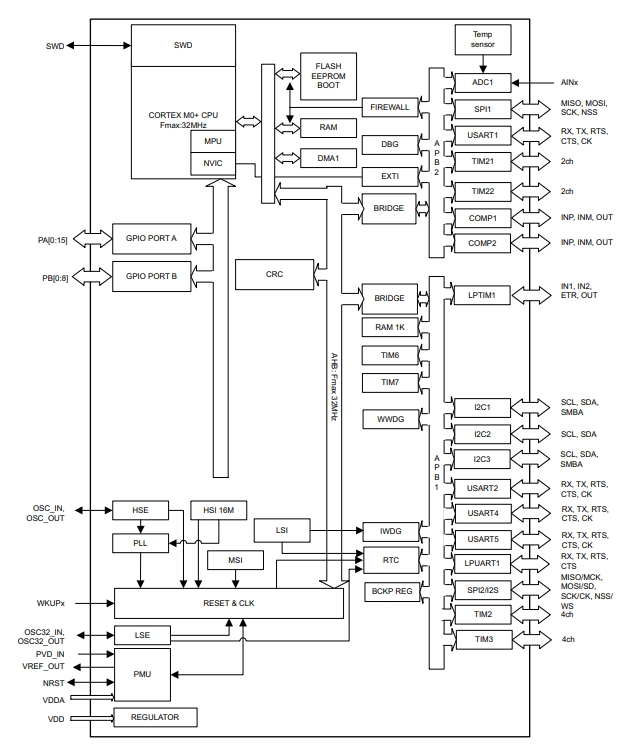 6、安全性保护:STM32L071CZT7具备硬件安全模块,包括读写保护、代码加密和运行时访问控制等功能,以增强系统的安全性。